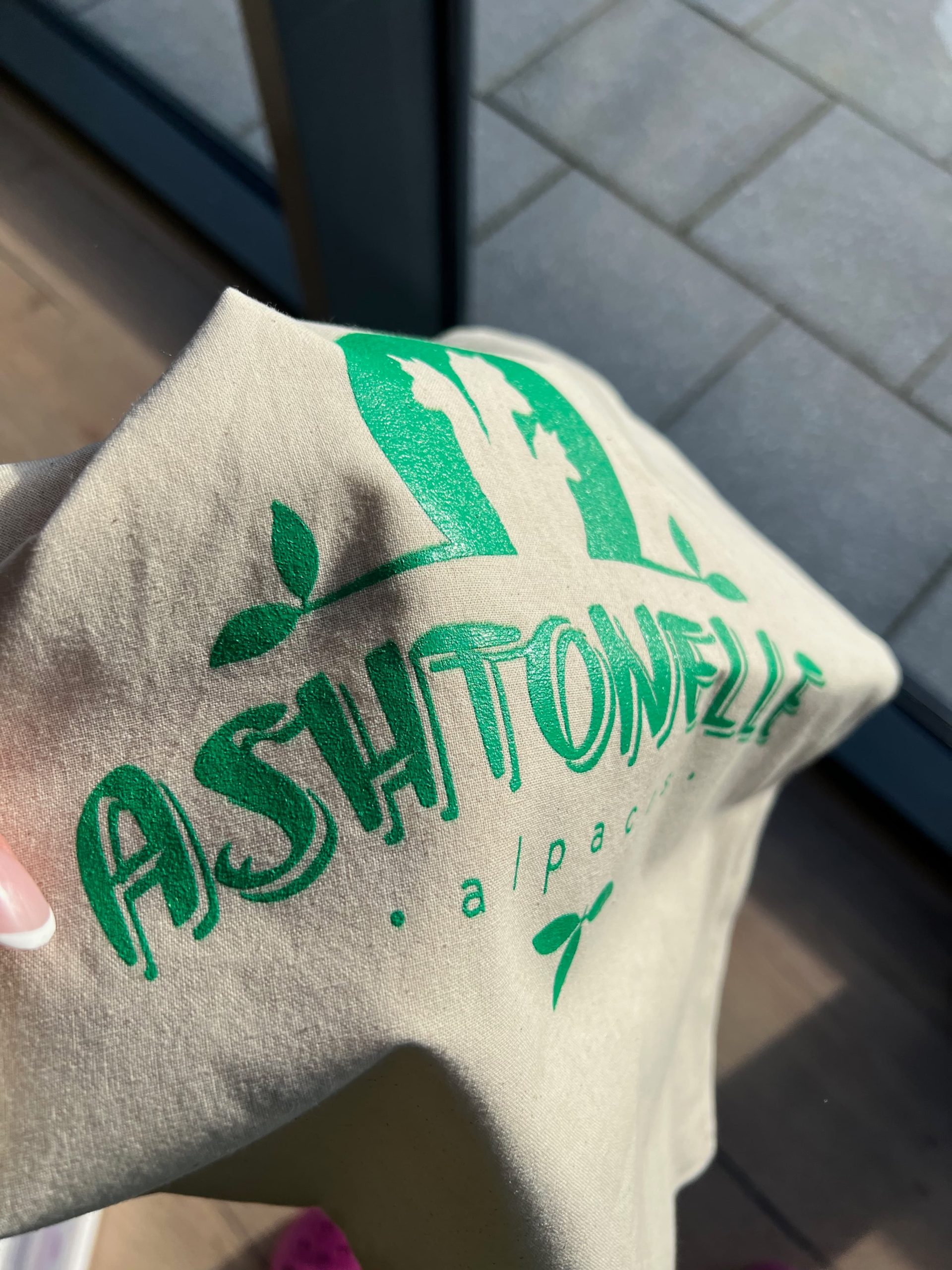Featuring our Ashtonelle Alpacas logo, this tote is a lovely way to show your support for local, homegrown yarn while carrying your latest fibre treasures in style.
