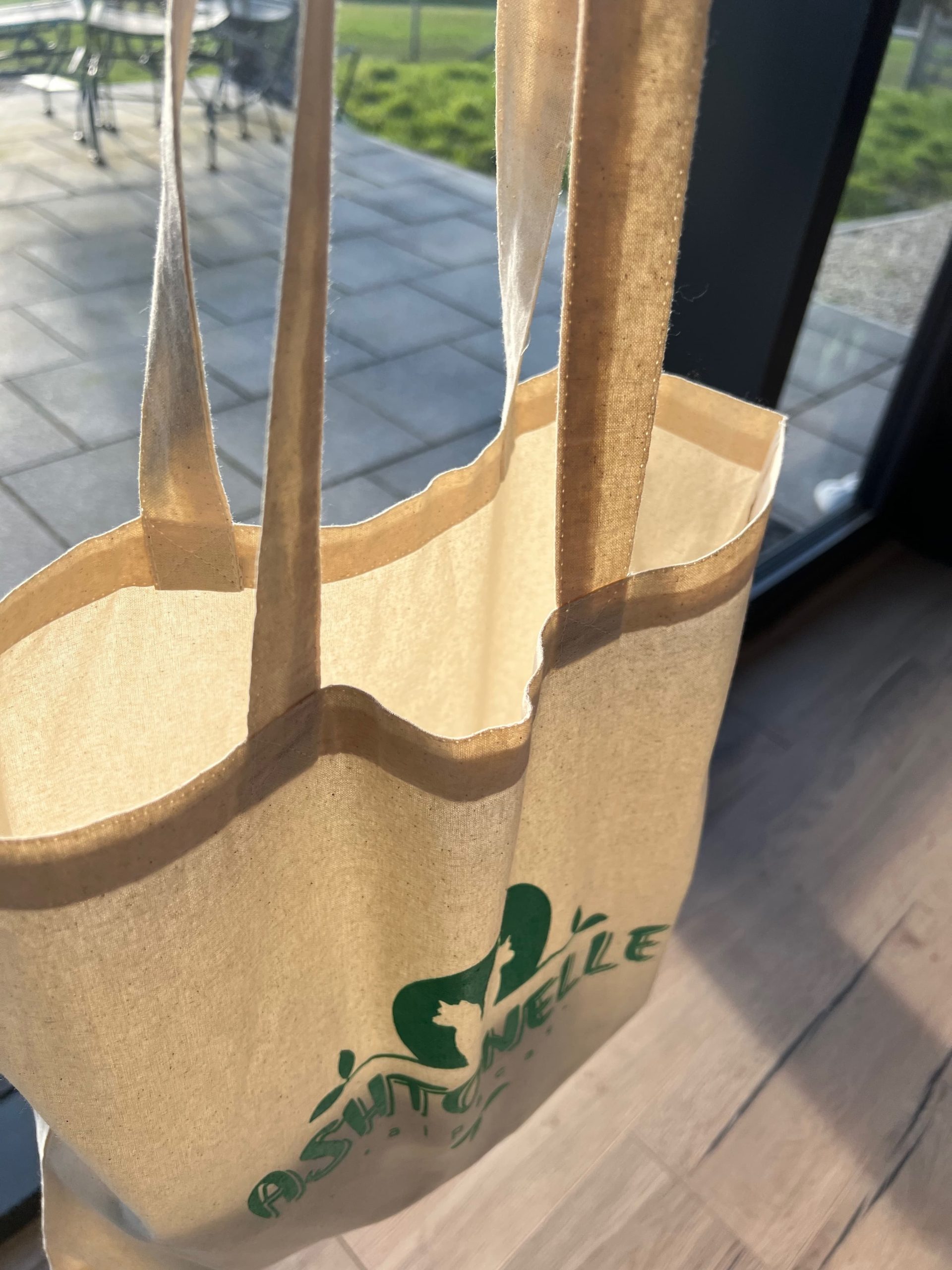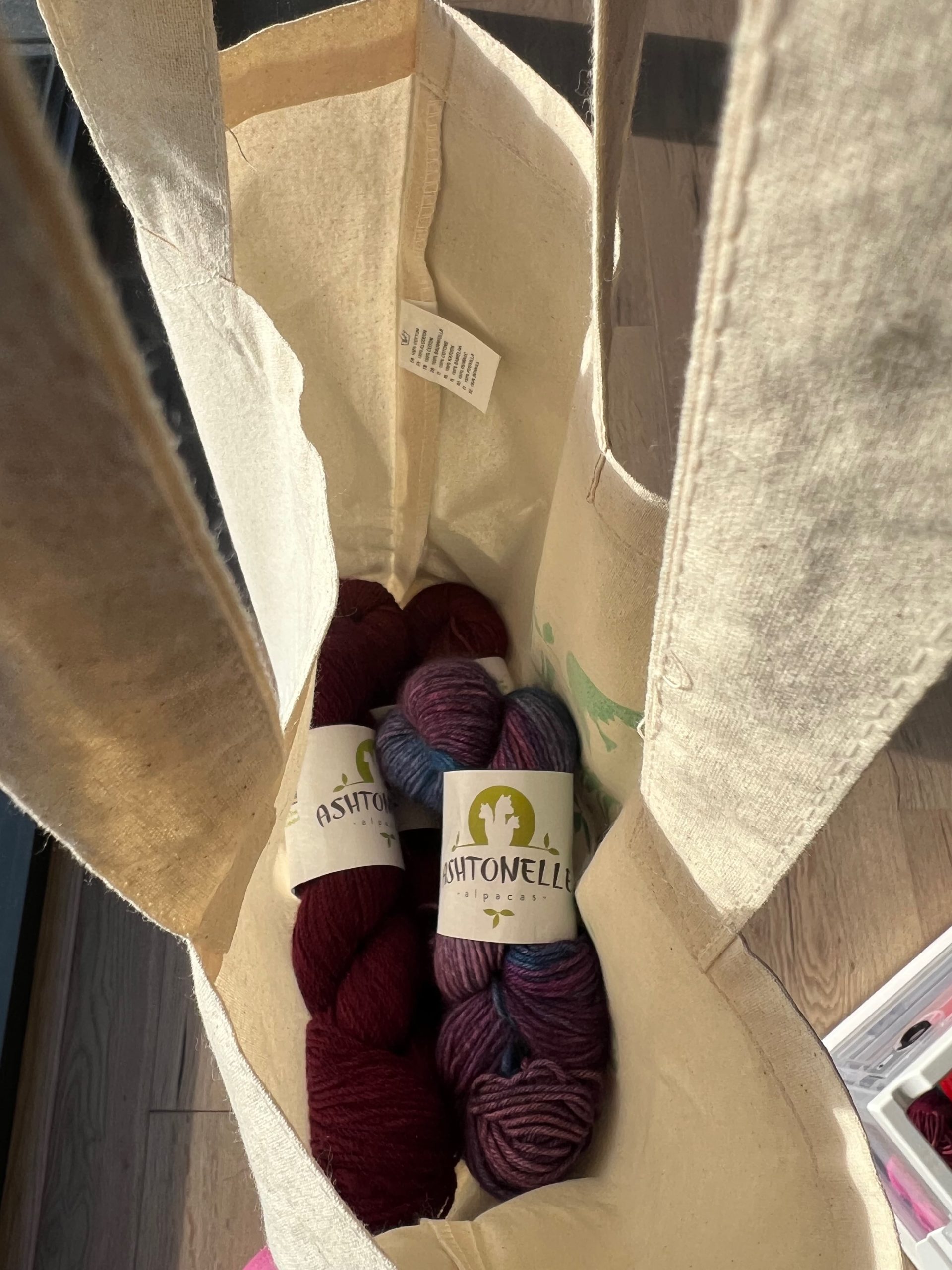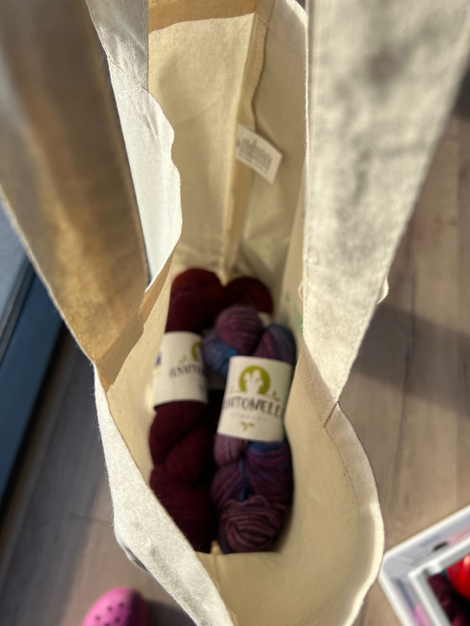 Take a little piece of Ashtonelle with you wherever you go.  Our standard-sized cotton tote bag is the perfect companion for yarn shopping, project bags, and everyday errands.