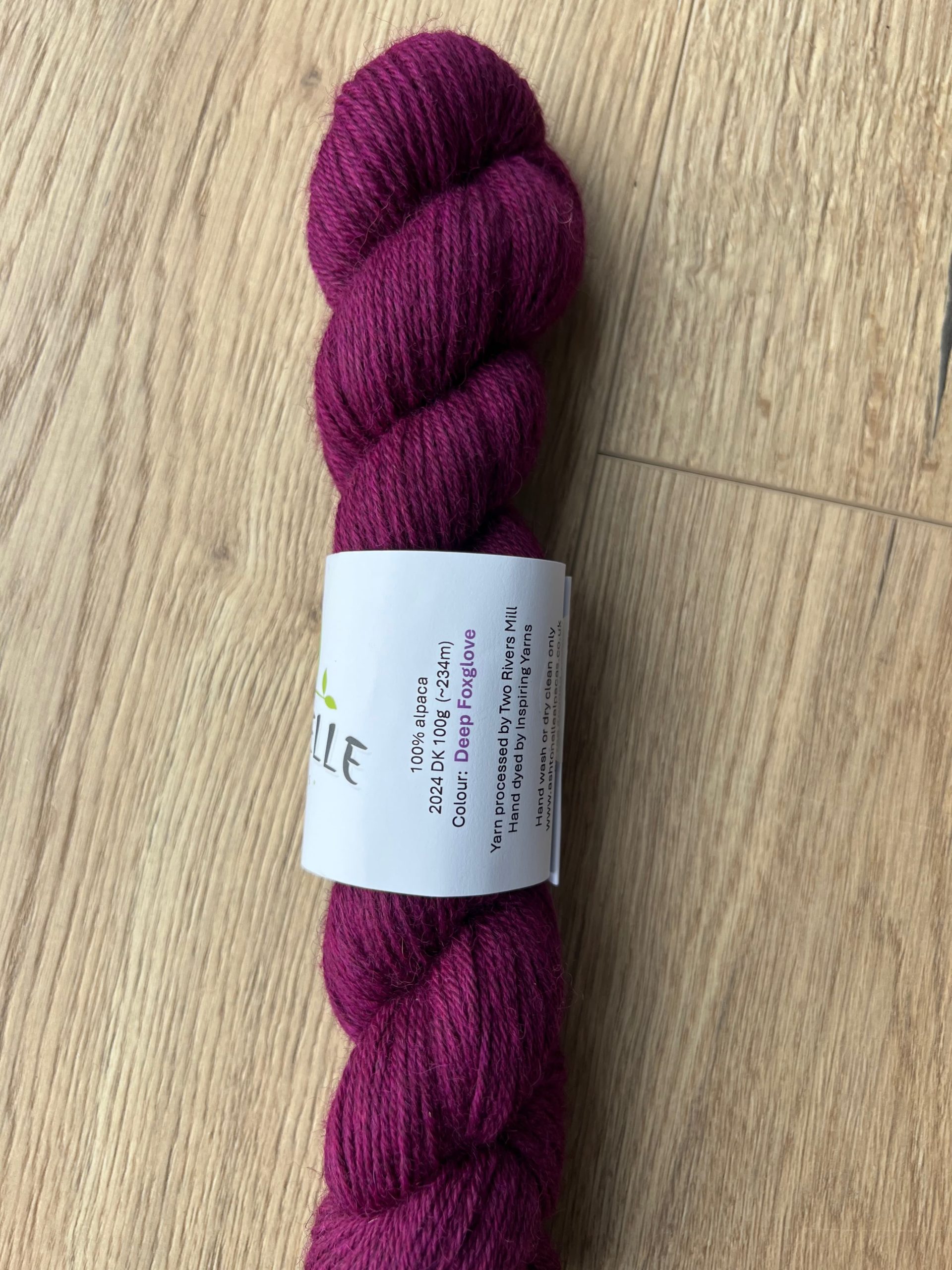 A beautifully soft 100% alpaca double knit yarn, hand-dyed in small batches using fleece from our own alpacas. Warm yet lightweight with a gentle drape, each skein or ball has depth of colour and subtle variation, making every project unique.