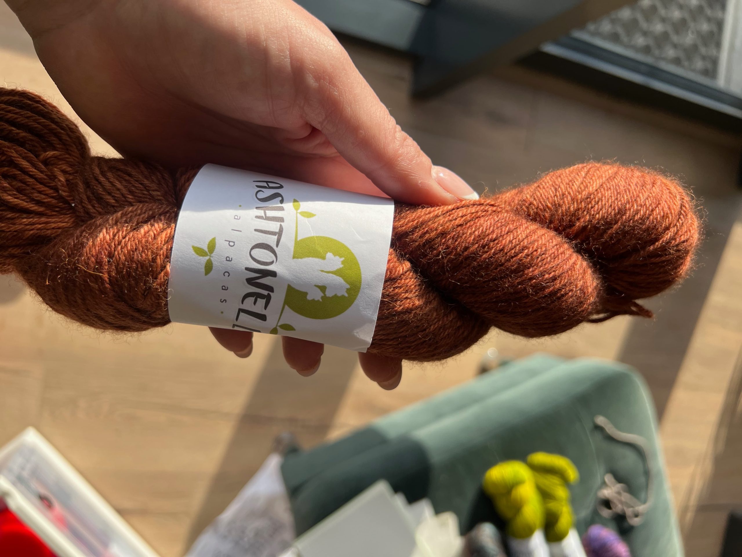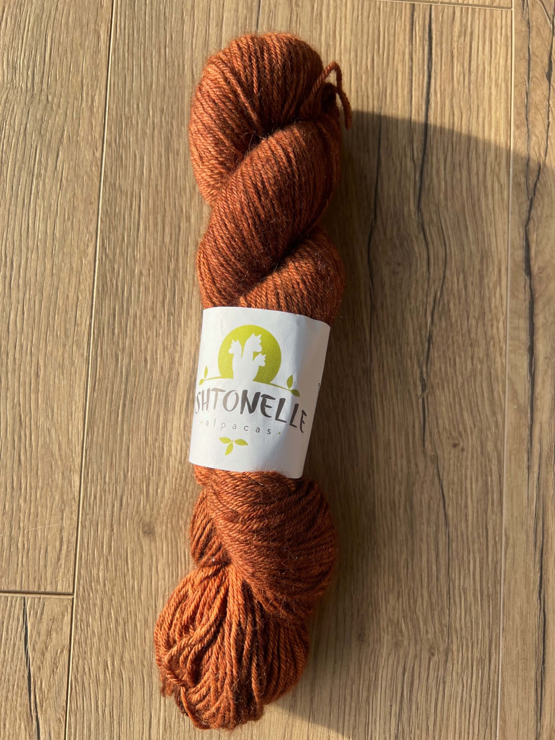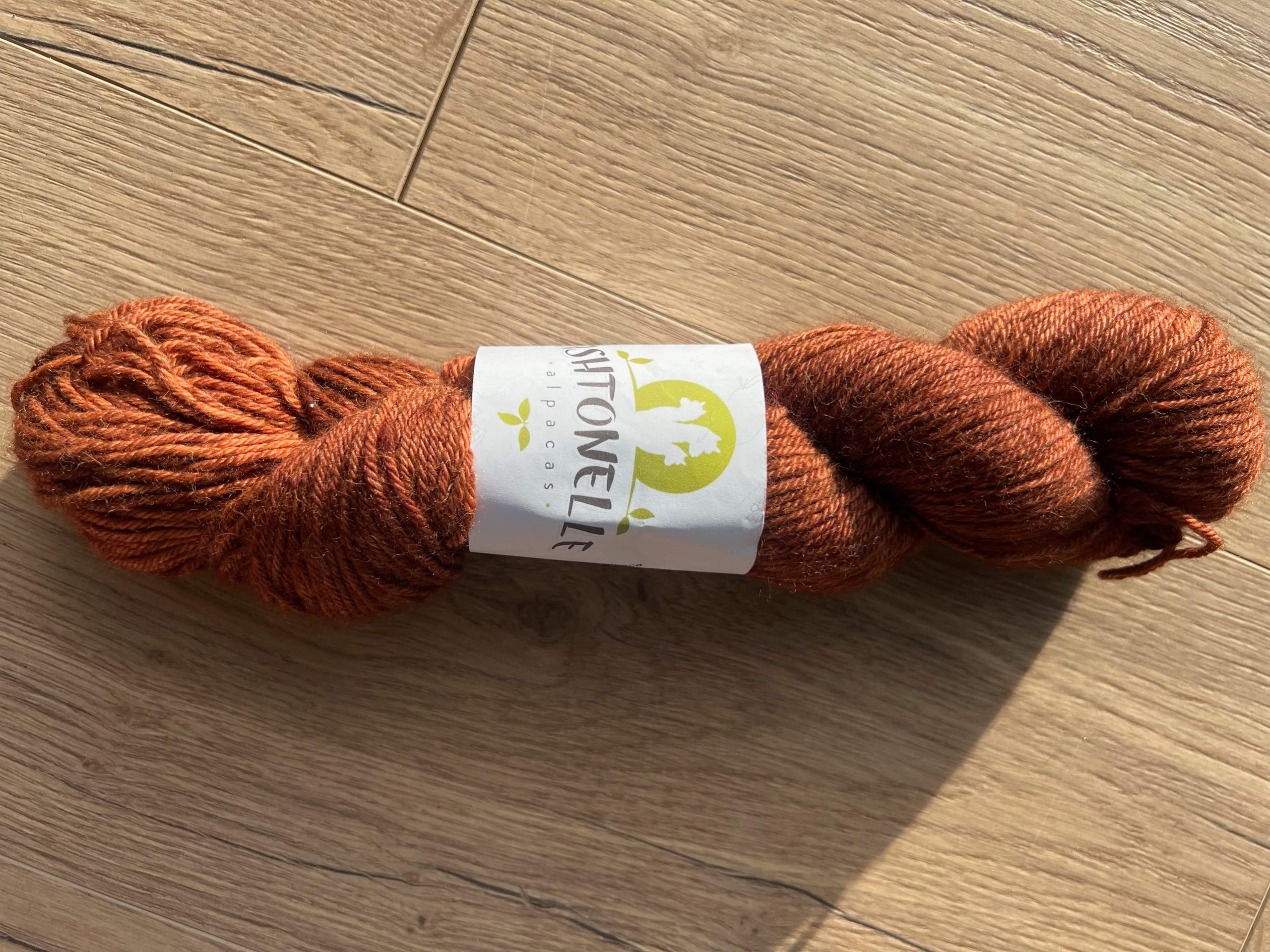 A beautifully soft 100% alpaca double knit yarn, hand-dyed in small batches using fleece from our own alpacas. Warm yet lightweight with a gentle drape, each skein or ball has depth of colour and subtle variation, making every project unique.