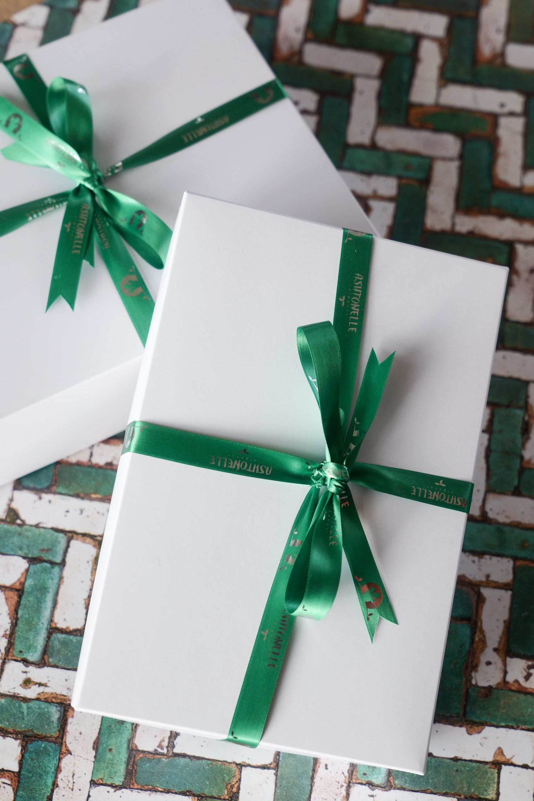 Suitable size gift box can be added to your order.  Items will be wrapped in green tissue paper and the box tied with Ashtonelle branded silver embossed ribbon.